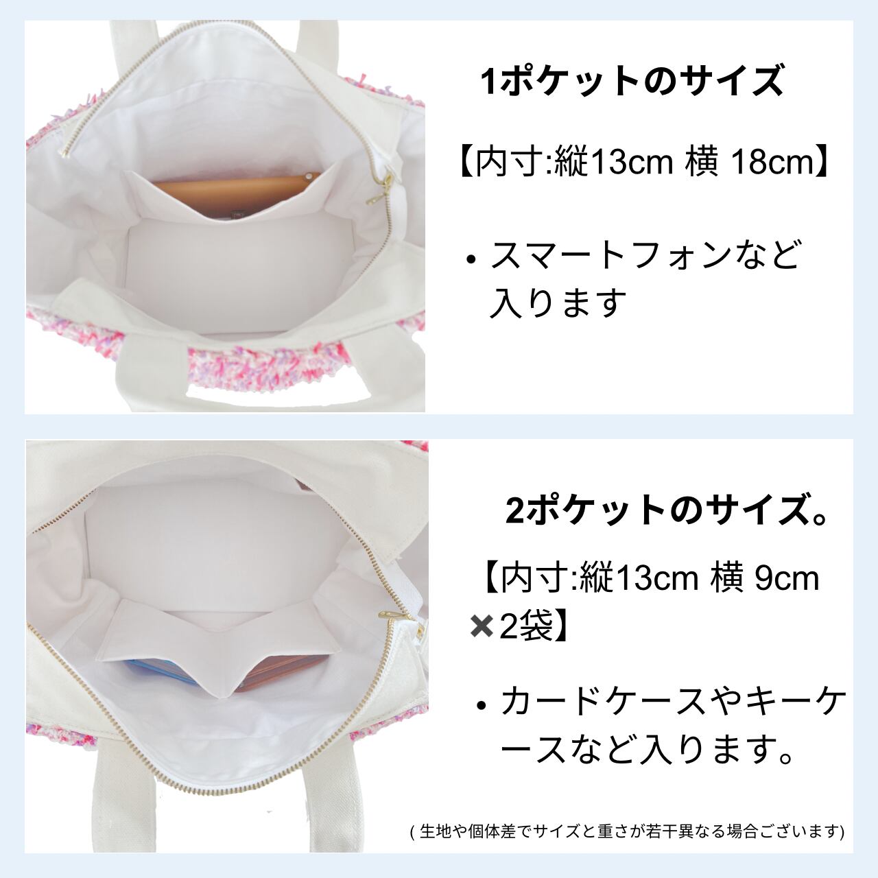 生地や個体差でサイズと重さが若干異なる場合がございます。